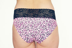 Panty tipo Hipster en Lycra algón estampada con detalle en encaje. Encuéntralo en las t allas S-M-L-XL. Múltiples colores. Ref 135